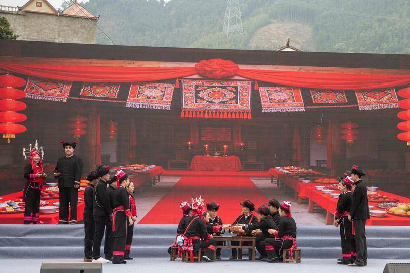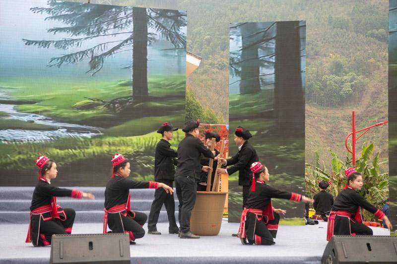 活动当天,渭业屯瑶族文化广场暖意融融。身着传统瑶服的同胞们以载歌载舞的礼仪迎宾,让远道而来的宾客沉浸式感受瑶族待客之道,现场备好的茶水、油团、糍粑等特色美食,也让邻里乡亲与游客共享舌尖上的瑶家风味。舞台上,原创歌舞剧《蓝靛情缘》等节目精彩上演,生动展现了瑶族文化的深厚底蕴。